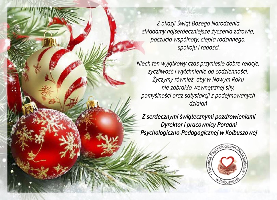 Z okazji zbliżających się Świąt Bożego Narodzenia składamy wszystkim najserdeczniejsze życzenia zdrowia, poczucia wspólnoty, ciepła rodzinnego, spokoju i radości.